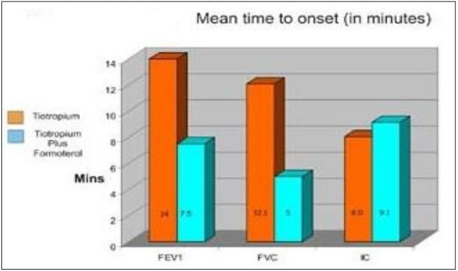 - Tiotropium + Formoterol in combination showed a faster onset of action compared to Tiotropium alone.