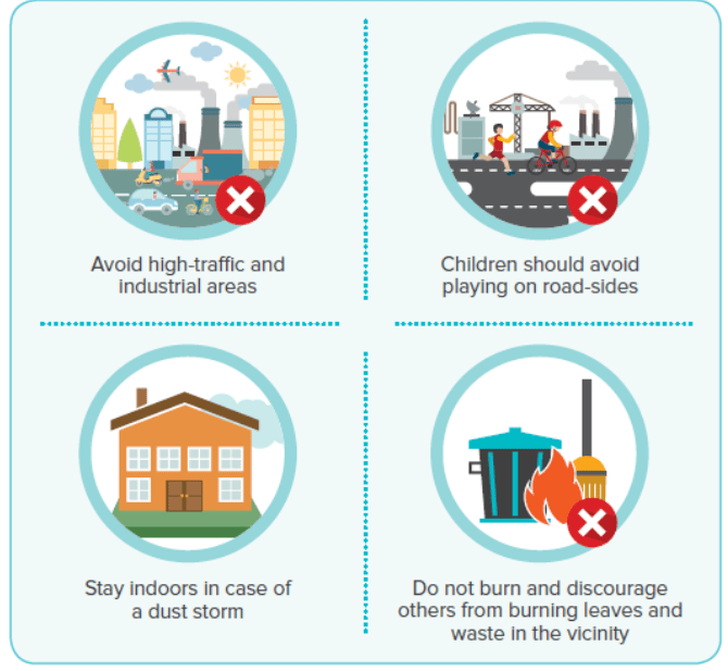 In most situations, it is difficult to avoid exposure to air pollution, hence reducing the risk is an important step, by knowing the AQI levels and avoiding outdoor activities when it is very high.