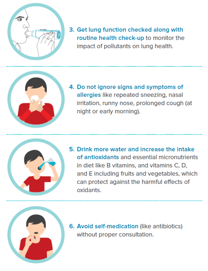 2. Minimize or limit prolonged exposure to pollutants, as these may exacerbate symptoms