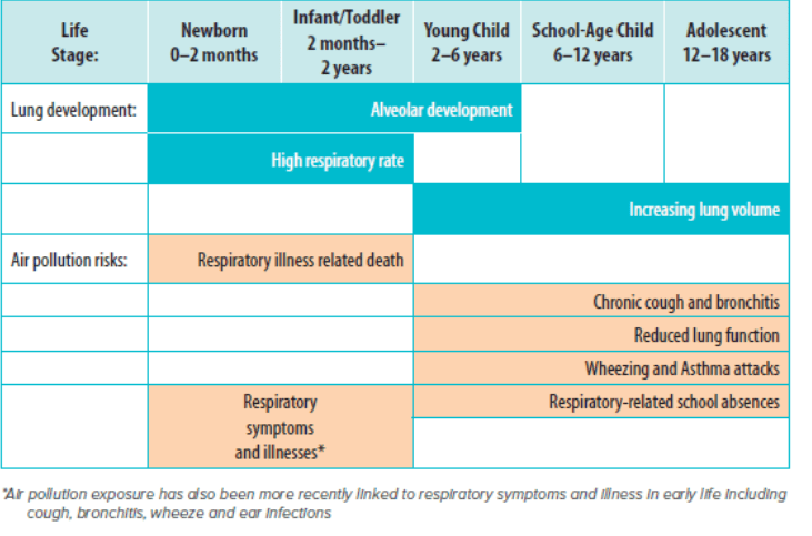 - Although exposure to air pollution effects all age groups, there is emerging evidence that exposure during pregnancy and early childhood increases the risk of adverse health outcomes.