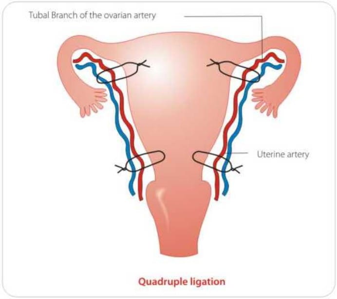 Pelvic devascularisation requires laparotomy, and progressive, step-wise devascularisation, whereby the uterine, ovarian and internal iliac arteries are ligated.