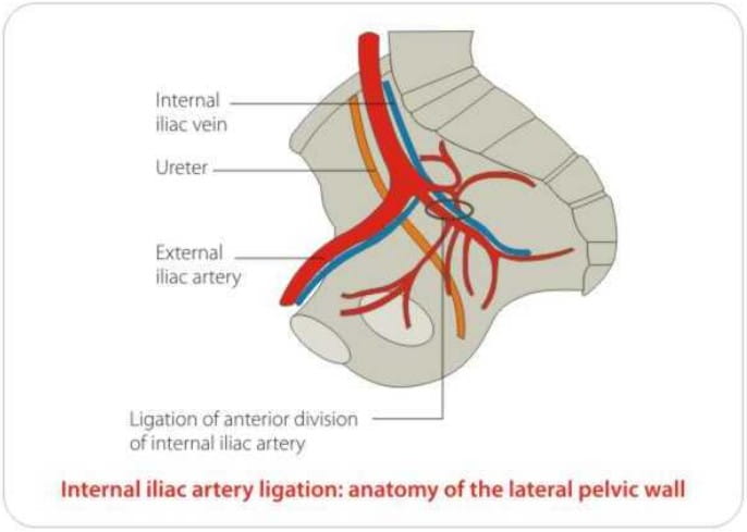 Internal iliac artery ligation is effective in arresting bleeding from within the genital tract, however,