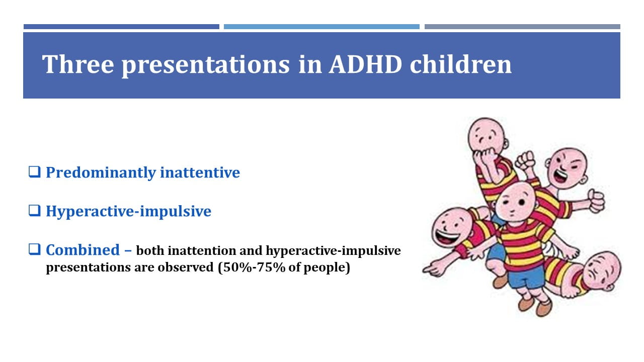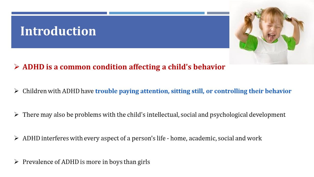 This slide set contains general understanding of principal features, risk factors, and treatment for ADHD in children and adults.