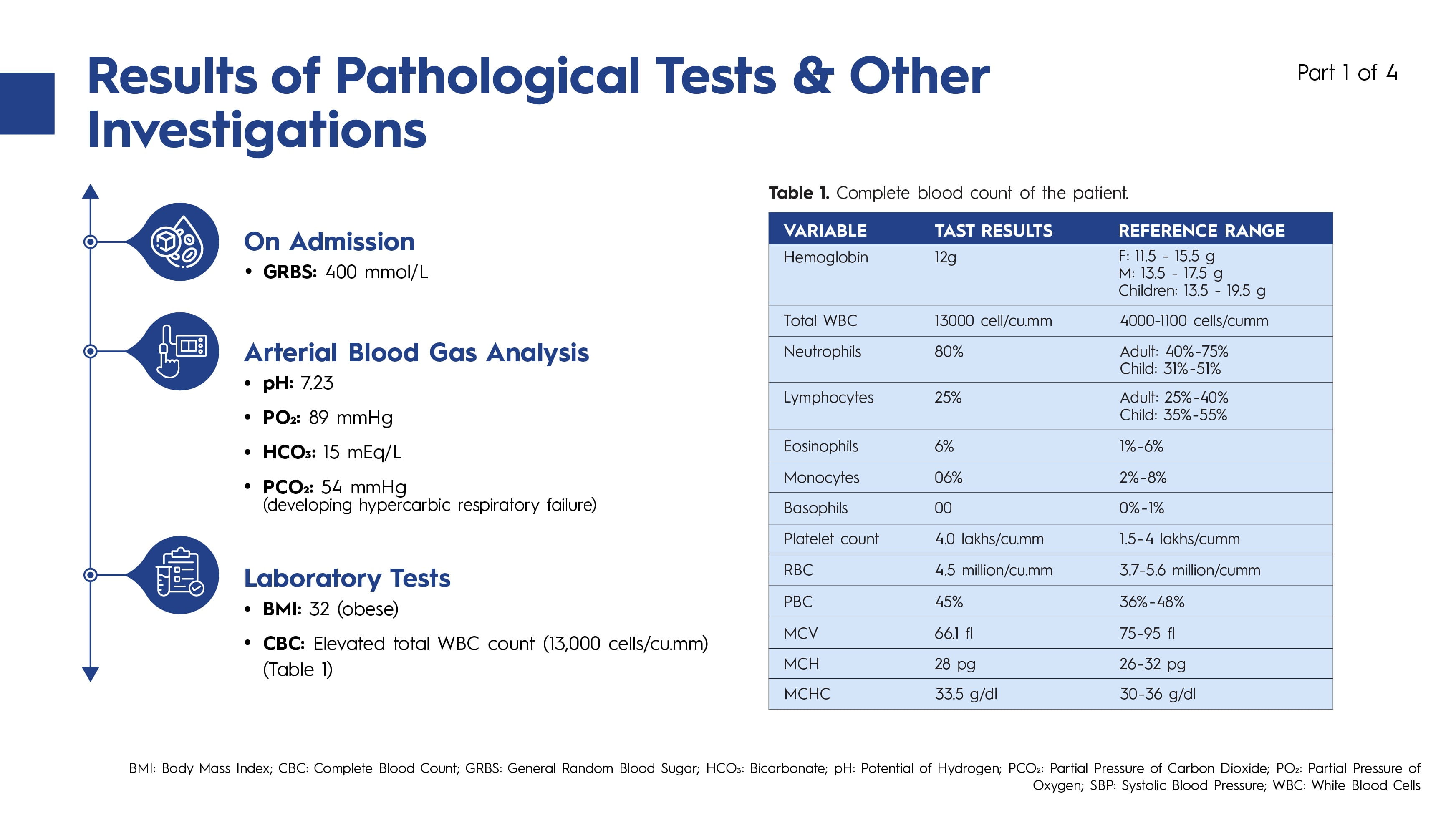 In this rare case of diabetic phrenic nerve palsy, treatment focused on stabilizing respiratory function and correcting metabolic imbalance. Management included CPAP support, insulin therapy, electrolyte correction, antibiotics, and chest physiotherapy, ensuring gradual recovery and effective glycemic control.